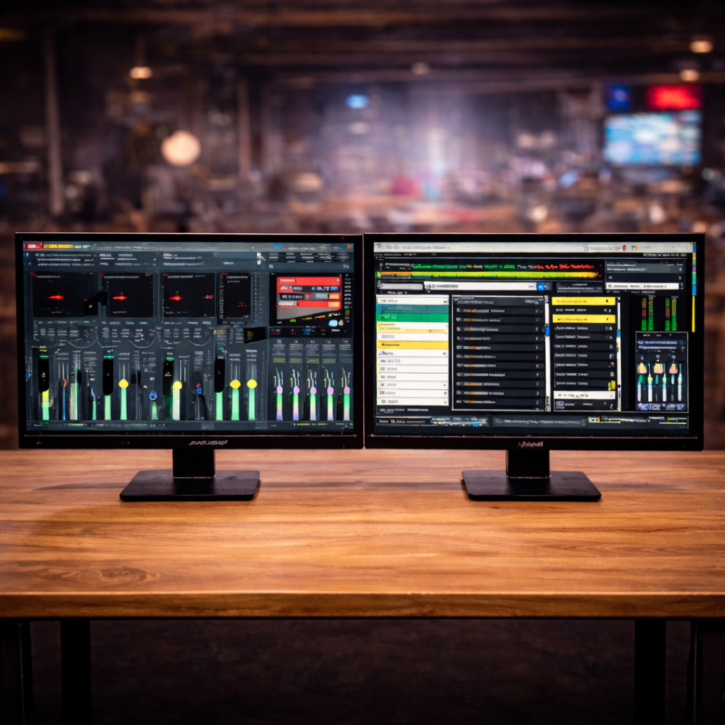 Se você quer operar uma rádio com qualidade profissional, organização e agilidade, usar dois monitores não é luxo — é estratégia.