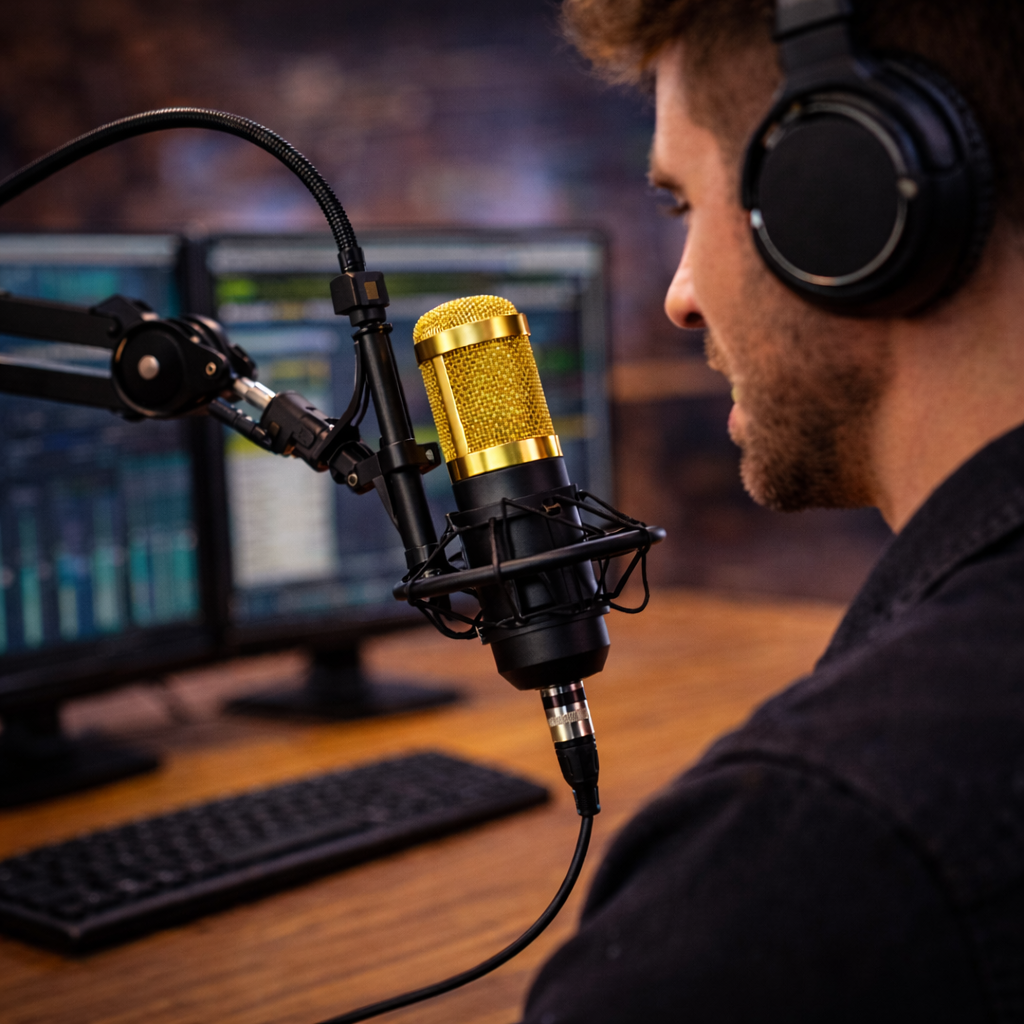 O Microfone Condensador BM800 foi desenvolvido para entregar captação nítida, redução de ruídos e qualidade sonora superior, ideal para web rádio, podcast, narração, lives, YouTube e gravações profissionais.